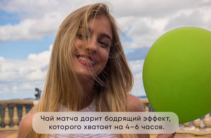 В матче кофеина гораздо больше, чем в черном и зеленом чае, но почти столько же, сколько и в чашке кофе. Однако нефритовый напиток бодрит намного эффективнее крепкого эспрессо, делая это мягко и деликатно.