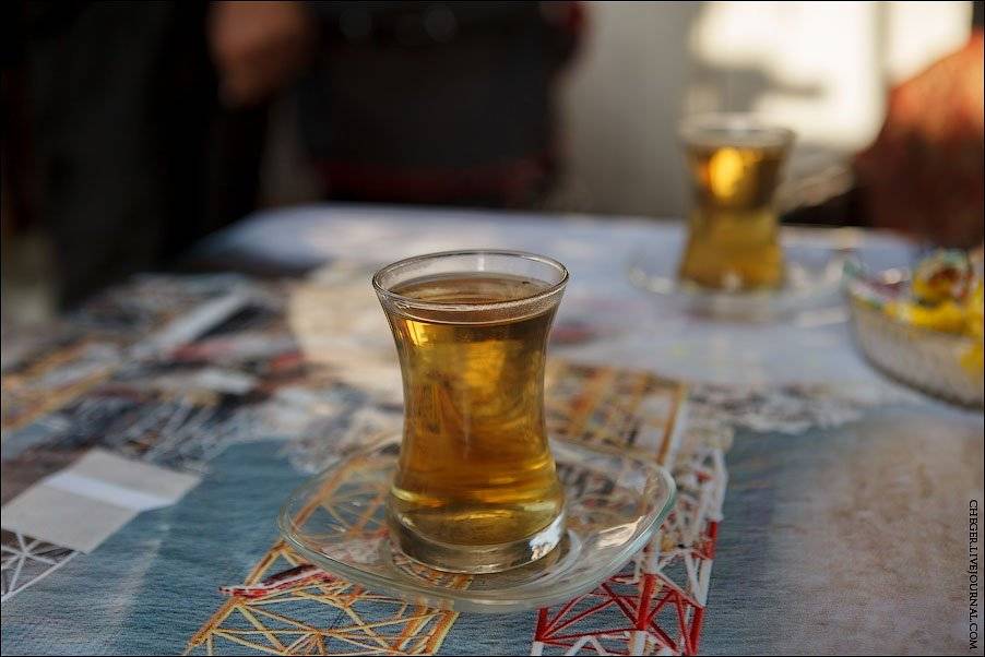 В Турции в среднем на каждого жителя приходиться около 2,5 килограммов чая в год. Пьют его с сахаром. При подаче на стаканчик чая вам положат на блюдце 2 кусочка сахара.
