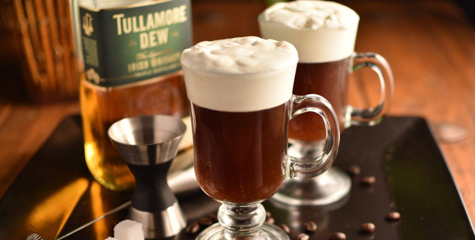 Кофе, сливки, коричневый сахар и ирландский виски.