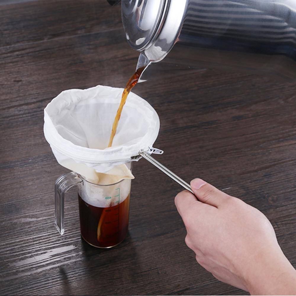 4. Процедите кофе через мелкое сито. Весь осадок просто выбросите. Затем процедите по второму разу, пропуская его через кофейный фильтр. Это позволит удалить любые мелкие частички, которые ухудшат текстуру напитка.