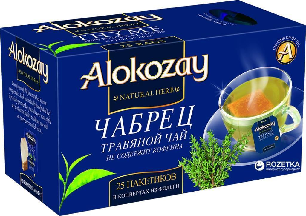 В состав продукта входят натуральные листы трав и никакой химии. Алокозай предлагает большой выбор природной продукции. Чай расфасован в коробочки разных цветов: синие для бергамота и черной смородины, желтые для лимона.