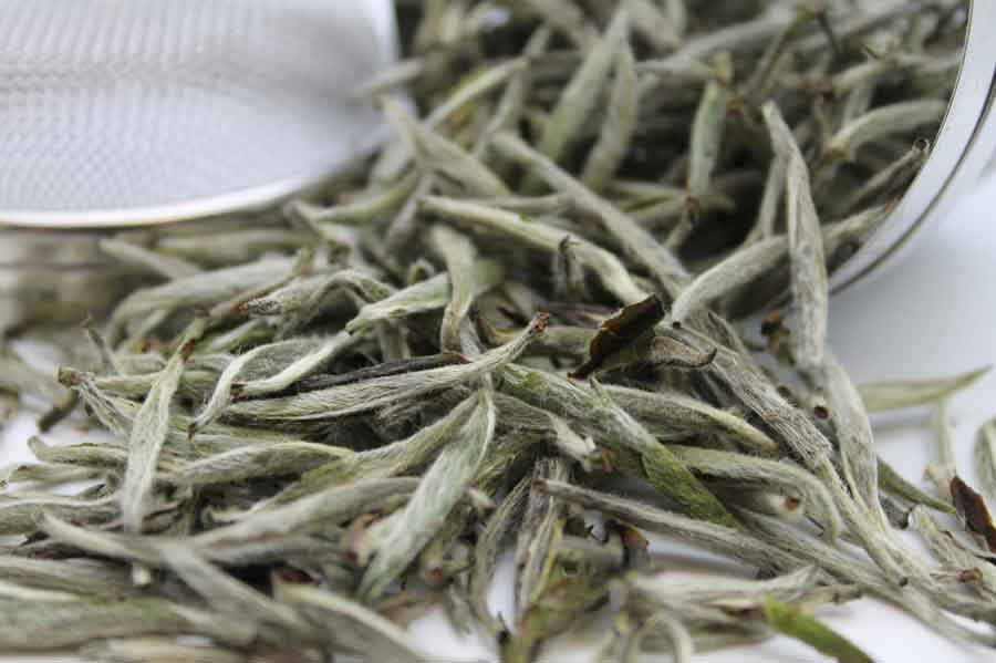 Лучшие белые чайные листья выщипывают весной, особенно с середины марта до середины апреля, когда он еще не проливается.