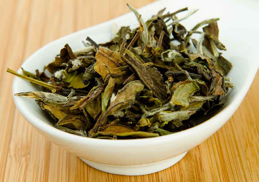 Этот сорт несколько отличается от описанного выше. Он включает в себя новые листья, а также центральный игольчатый росток растения. Хотя он широко принят в качестве более дешевого аналога серебряного игольчатого белого чая, вы можете быть удивлены, узнав, что этот белый пионовый чай на самом деле предпочтен любителями белого чая из-за его полного вкуса и более низкой стоимости.
