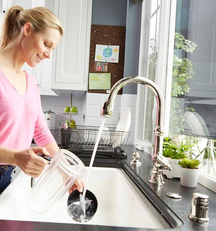 Чашу и съемные насадки (венчик, ножи, диски) можно помыть в проточной воде, то есть под краном. Некоторые модели производитель не рекомендует отправлять в посудомоечную машину, однако в большинстве случаев это делать можно, что значительно облегчает процесс чистки блендера.