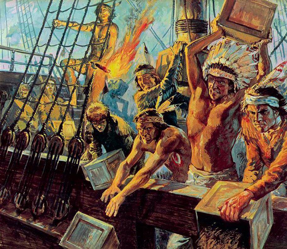 Ночью, 16 декабря (как это удалось — до сих пор загадка) на судна проникли люди (поговаривали, что это были даже индейцы, но официальная версия гласит, что это были переодетые в индейцев члены оппозиции «Сыны свободы») и выбросили за борт ВЕСЬ груз. А это было ни много ни мало 45 тонн чая. Это событие и получило название «Бостонское чаепитие».