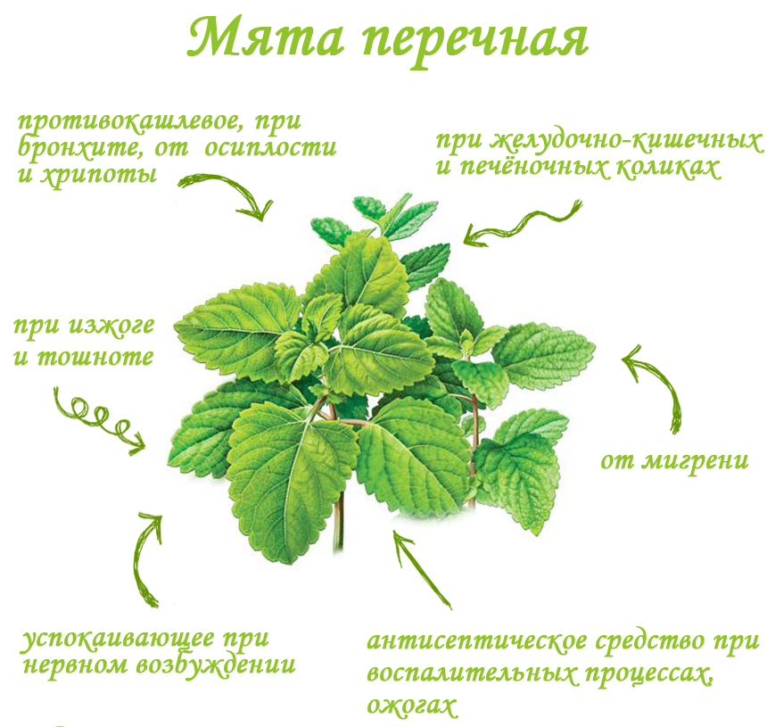 Помимо этого, листья мяты использовались при лечении заболеваний кожных покровов, желудочно-кишечного тракта, сердечно-сосудистой системы, помогали справиться с головными и менструальными болями, облегчить течение токсикоза.