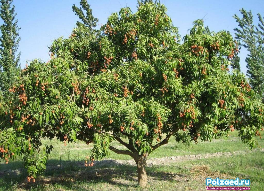 Урожай собирают с мая по июнь, однако, полезный фрукт можно увидеть на полках магазинов и супермаркетов круглогодично. Сам плод красного цвета, покрыт плотной кожурой с бугорками. Родиной его по праву можно считать Китай, хотя на сегодняшний день он встречается на просторах многих азиатских стран.