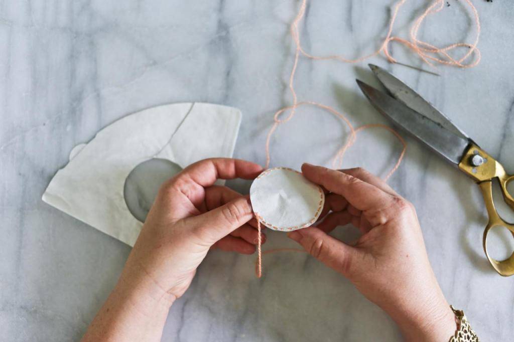 Теперь нужно сложить два одинаковых кружочка и начинать их сшивать по кругу.