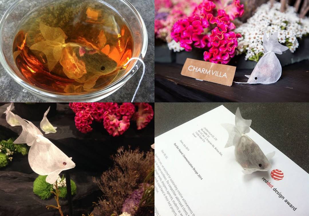 Чайный пакетик, который при заваривании раскрывается в золотую рыбку, однозначно выглядит очень эффектно.