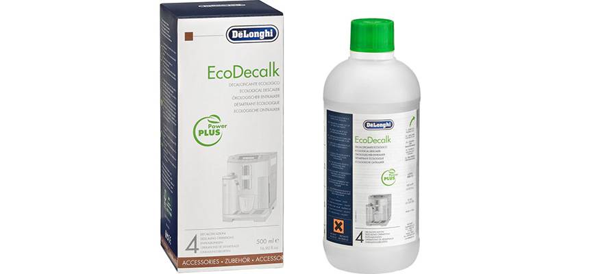 Еще один препарат — это жидкость для чистки кофемашины Delonghi своими руками Eco Decalk. Изготовлен он из качественных стопроцентно экологически чистых компонентов. Во время тестирования было отмечено, что чистка кофемашины Delonghi от накипи проведена безукоризненно, с соблюдением всех санитарно — гигиенических норм, а потому не вредно для здоровья человека. После обработки кофемашины работали намного лучше, а кофе был намного вкуснее и ароматнее. А все это потому, что в воду не попадали мелкие частицы солей от накипи, которая была полностью удалена.
