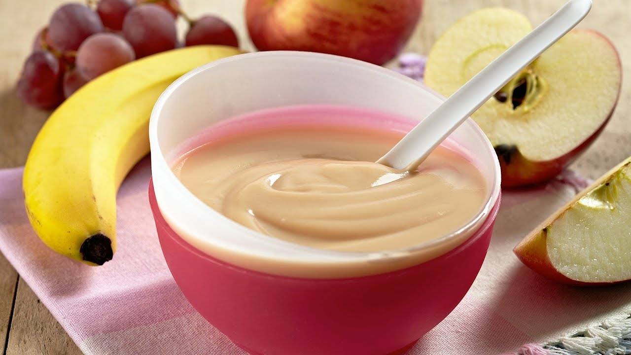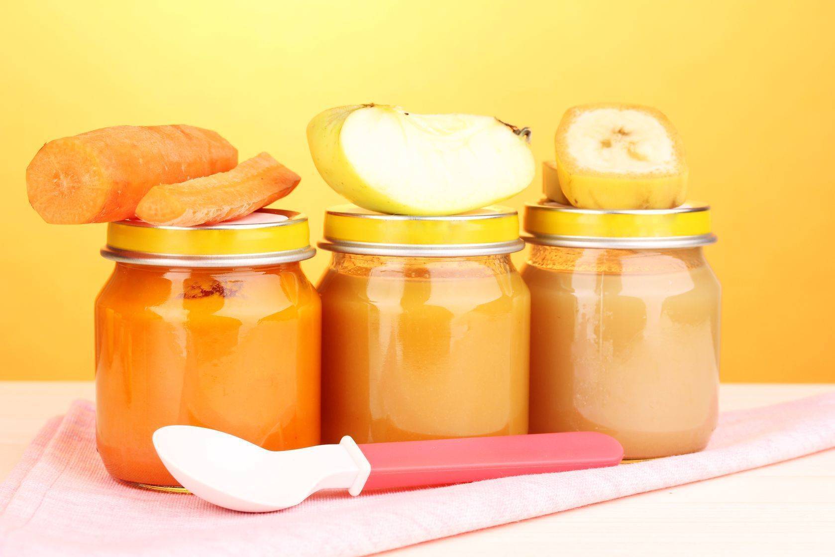 - пюре. Это самый распространенный вид прикорма. Его применяют для малышей от 4 месяцев. Различают пюре из одного или нескольких компонентов: из мыса, рыбы, овощей, фруктов, с добавлением творога. Оптимальный вариант в плане удобства и безопасности — продукция в стеклянных баночках, сохраняющая все питательные элементы;