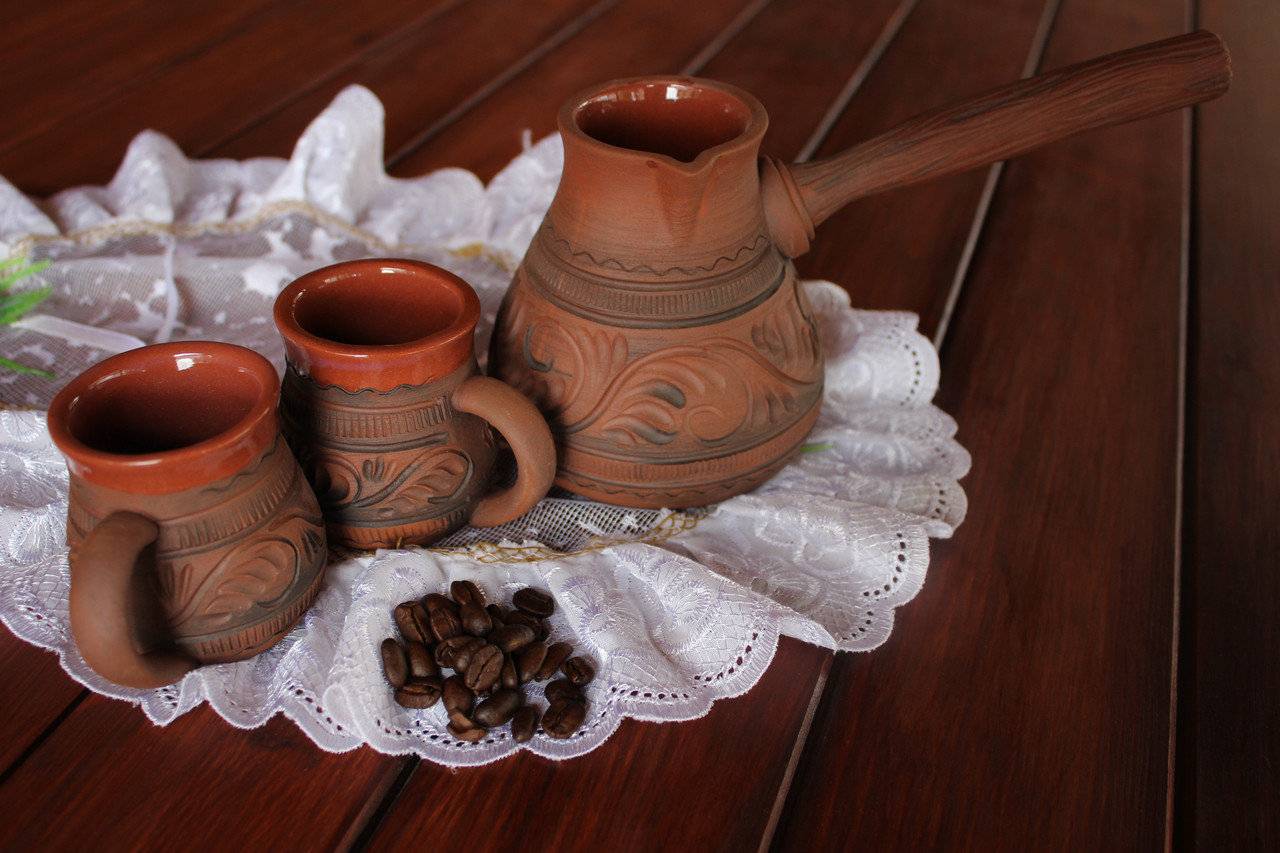 Для приверженцев исключительно одного рецепта приготовления хороши глиняные изделия, они впитывают аромат приготовленного кофе и насыщают им последующие завариваемые напитки.