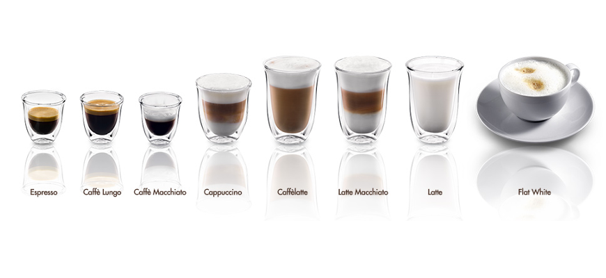 Флэт уайт, латте, капучино готовятся из эспрессо с молоком. Различия обусловлены неодинаковым соотношением ингредиентов. Latte молочно-сливочный по вкусу. Капучино менее молочный, чем латте, с плотным слоем пены.