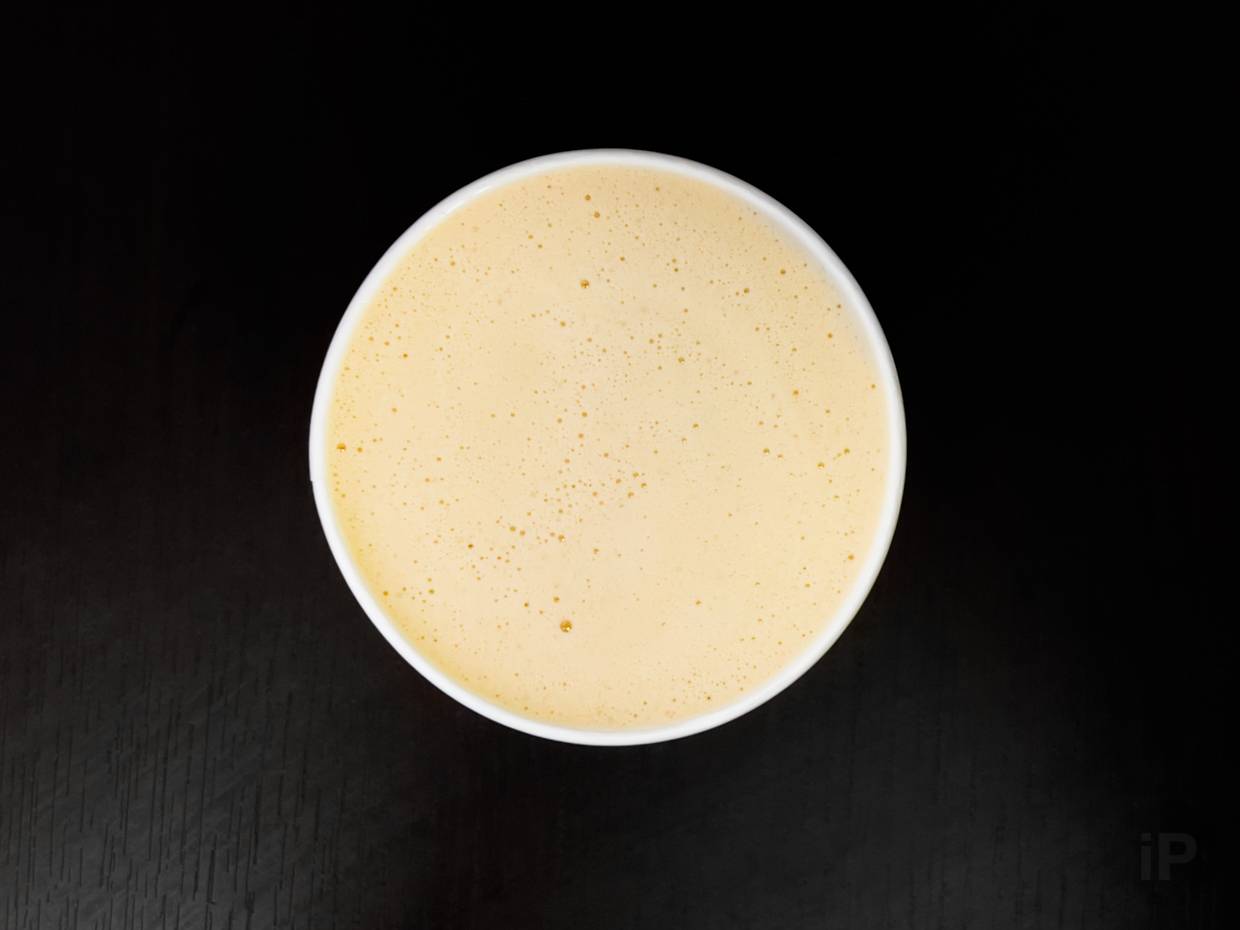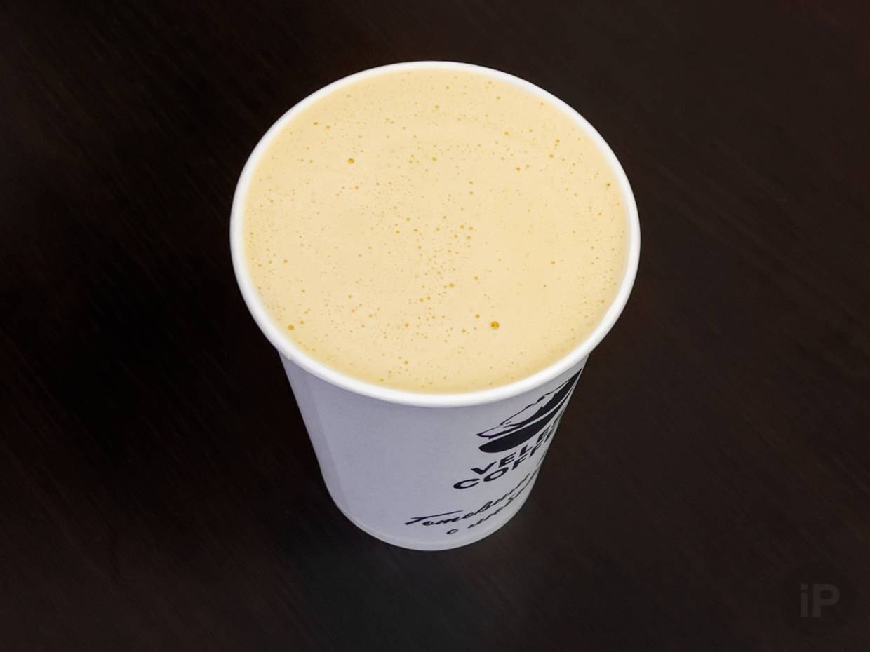 Напиток смешивают ещё во время приготовления поэтому никакого латте-арта (так называют рисунки на кофе) не получается