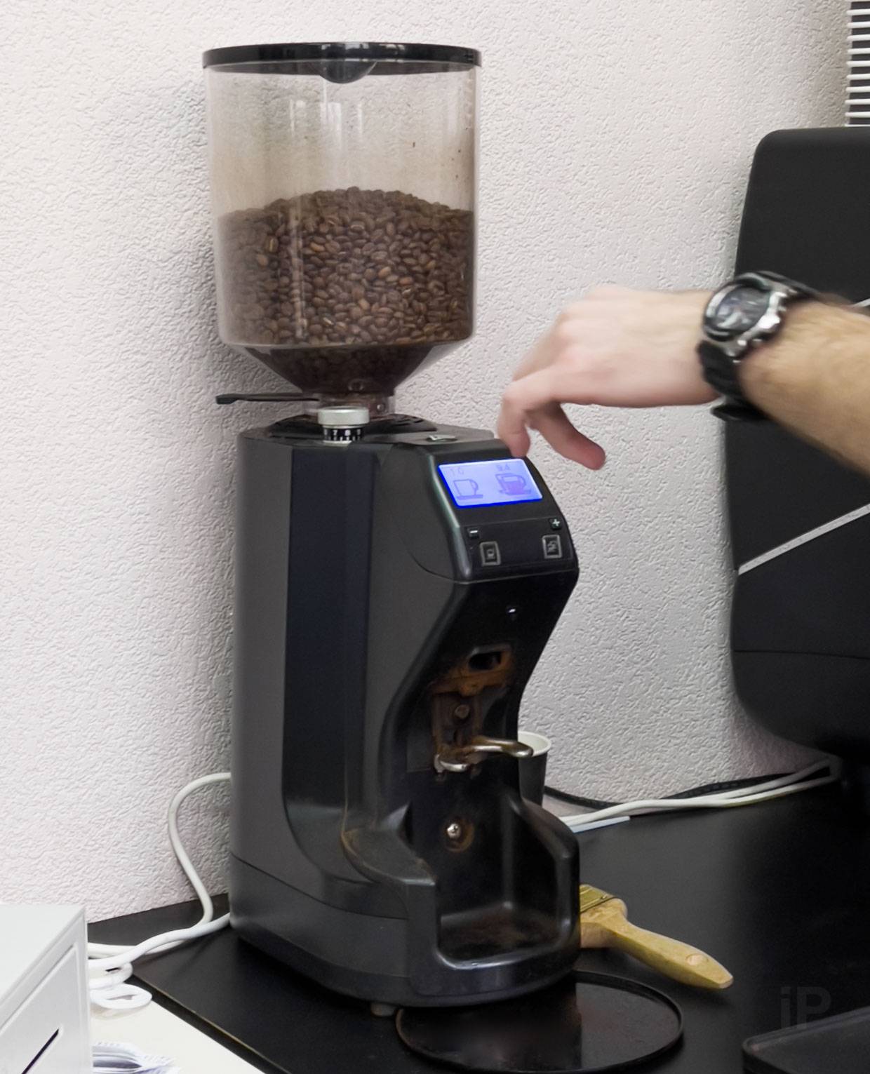 Эспрессо делают из свежих зёрен, который перемалывают в аппарате на фото выше. Это концентрированная порция кофе объёмом 35 мл, полученная под напором воды с давлением 9 атмосфер.