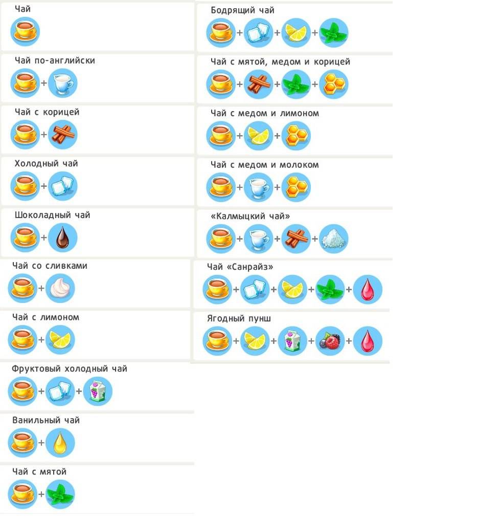 Предоставляем вашему вниманию популярные рецепты, что используются в игре. Вы сможете готовить латте, капучино, эспрессо, пудинги, и много других напитков и десертов.