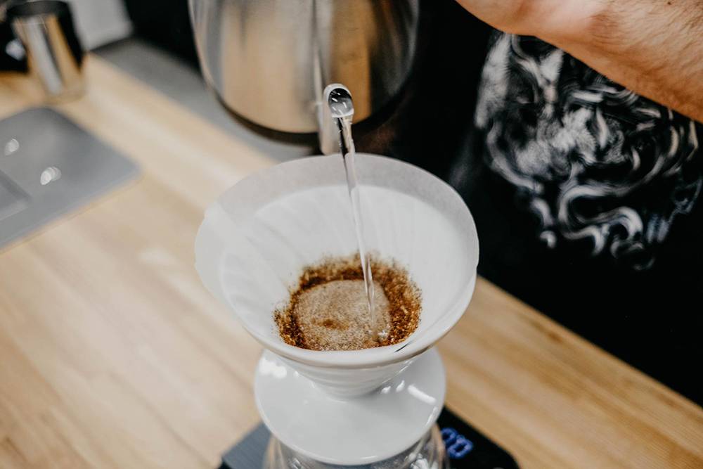 Ещё до того, как засыпать молотый кофе в бумажный фильтр, мы рекомендуем пролить через него 100–200 мл горячей воды и вылить её. Это нужно, чтобы удалить возможный привкус бумаги.