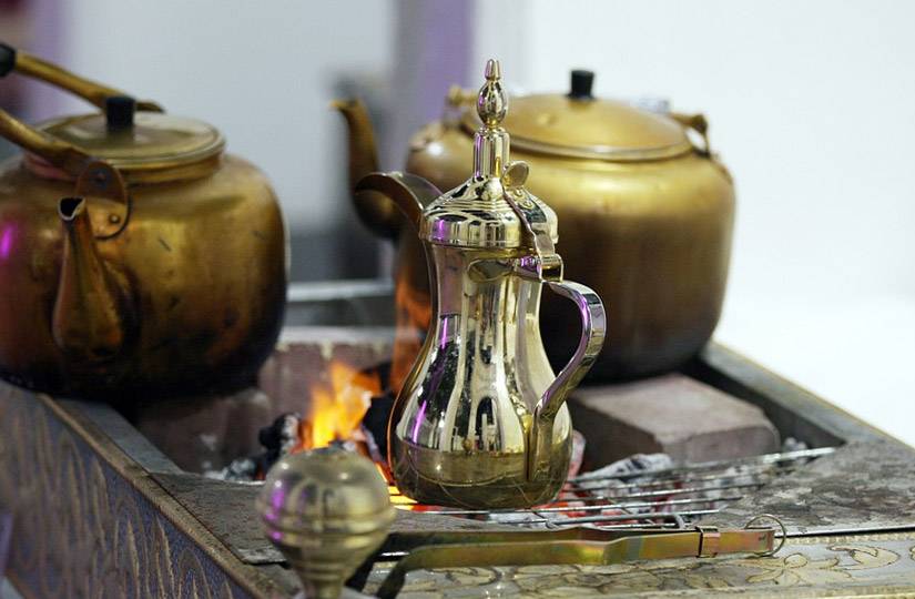 Кофе по-арабски также варят на углях и горячем песке. Однако, в отличие от кочевников, арабы делают это не на костре, а засыпают песок в специальный медный поднос с бортиками, который затем ставят на жаровню.