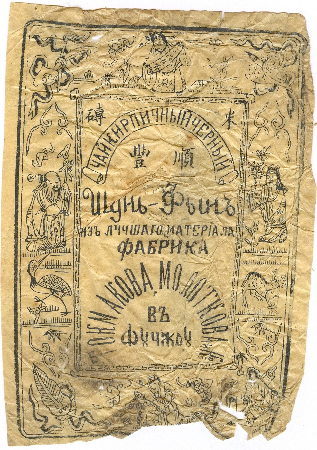 Этикетка кирпичного черного чая «Шунь-Фын» из лучшего чайного сырья. Конец XIX — начало XX века