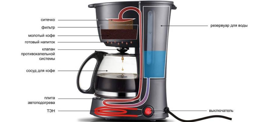С тех пор конструкцию неоднократно модернизировали, у кофеварки появился собственный нагреватель, некоторые модели оснащают кофемолками, но в основе работы остался всё тот же принцип фильтрации.