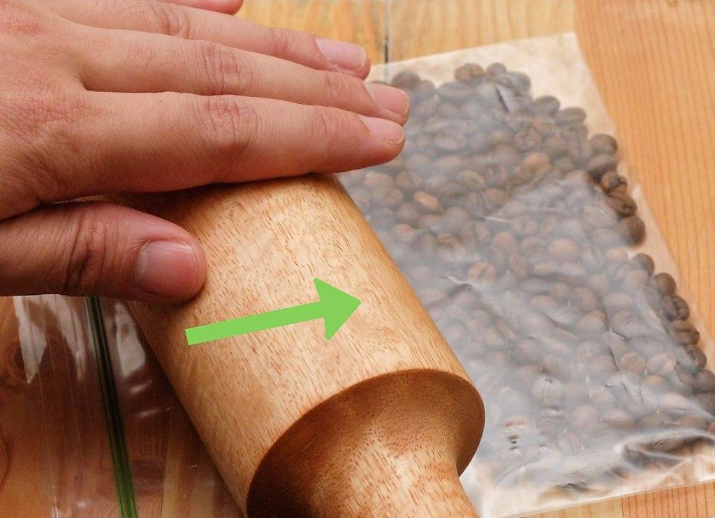 Еще один способ измельчить кофейные бобы — при помощи скалки