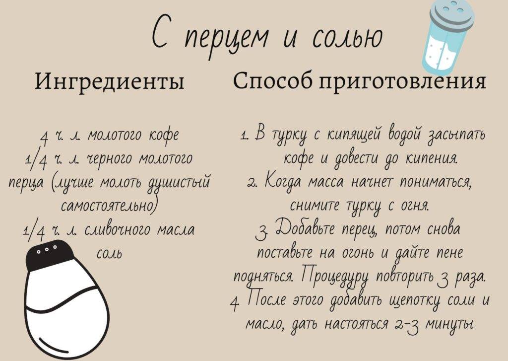 Подробней о нюансах приготовления рассказано в статье «Как делают кофе с солью».