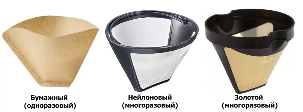 Многоразовые фильтры часто входят в комплект устройства. Обычно это конусообразный пластиковый каркас с полимерной сеточкой, в который и засыпается молотый кофе. После использования этот фильтр следует промыть и высушить, после этого его можно использовать повторно.