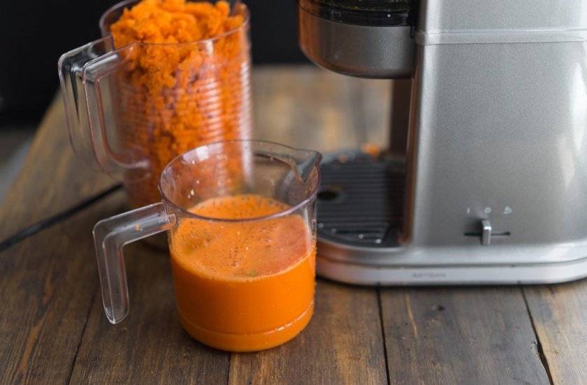 Из подготовленной тыквы и моркови выжимают сок удобным способом.