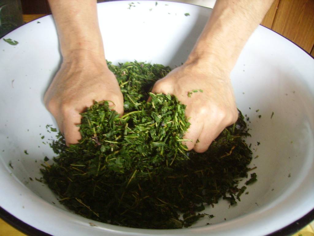 - Начать перемалывать листья, как бы выкручивая ткань, как полотенце.