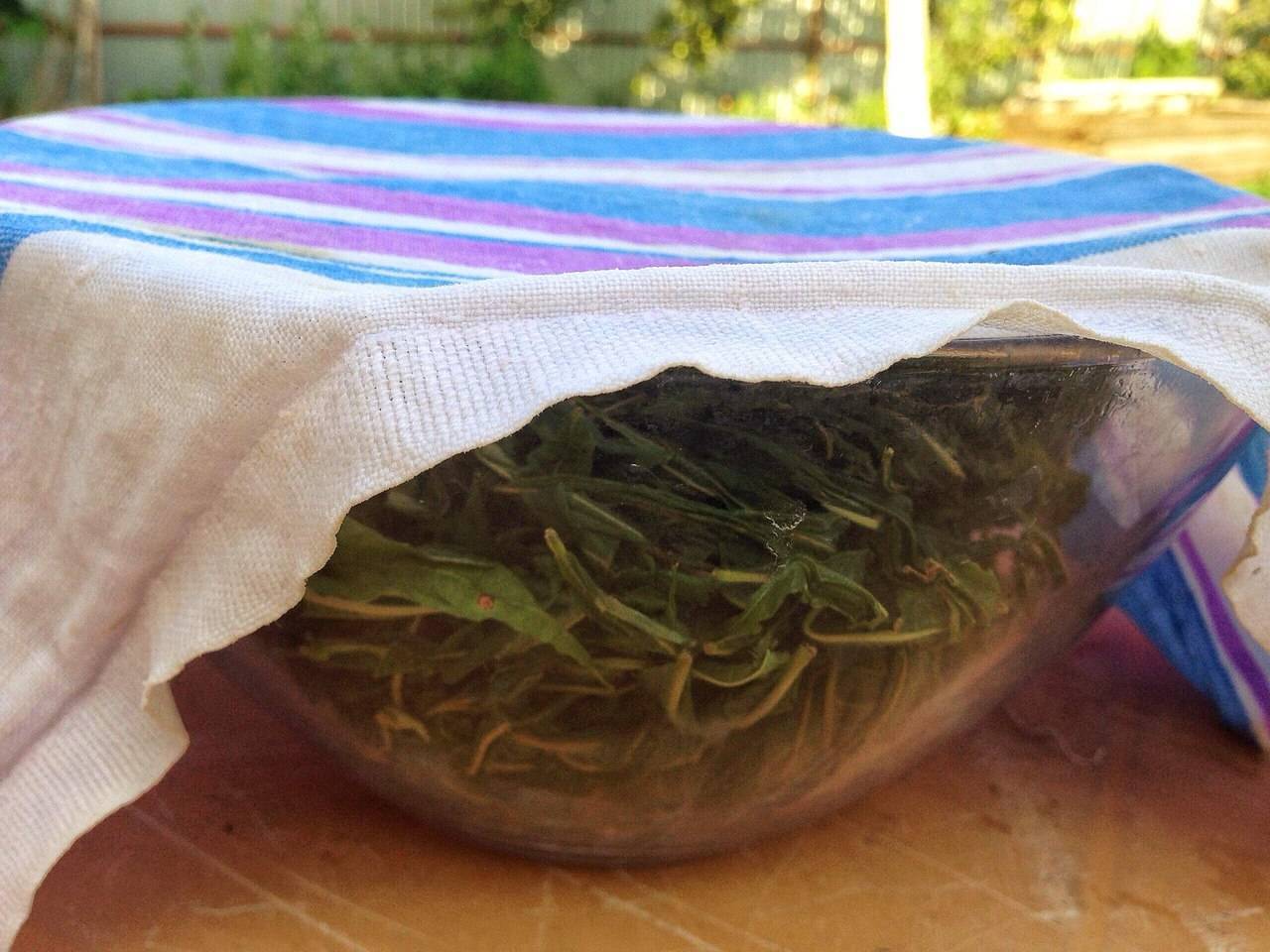 Несмотря на простоту процесса, у завяливания есть некоторые особенности. Во-первых, оставлять листья на улице нельзя, так как солнце и ветер быстро высушат их, а нам это совсем не нужно. Во-вторых, в доме вялить сырье нужно тоже вдалеке от солнечных лучей. Кроме того, в процессе перемешивания обязательно осматривайте листья и удаляйте плохие экземпляры, а также мусор или насекомых, которые могут попадаться в материале. Промывать сырье ни в коем случае нельзя: любое загрязнение или мусор достаточно убрать вручную.