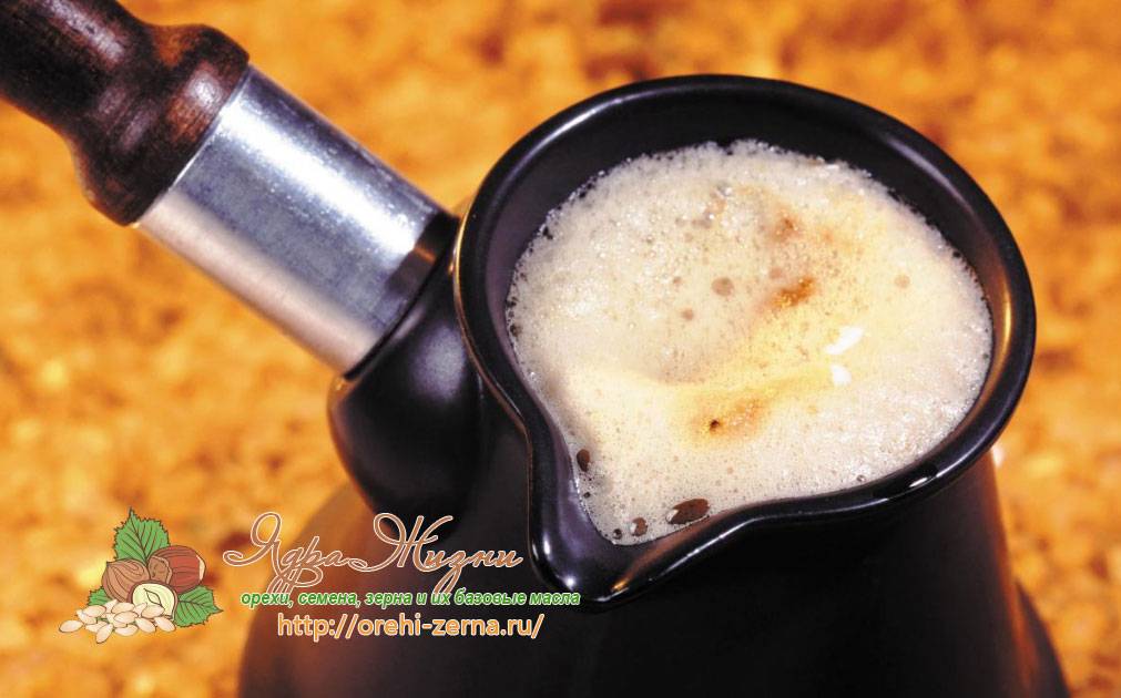 - Доведя напиток до подъёма пены, снять с пламени, дать опуститься, и снова отправить на конфорку. Повторить процедуру ещё 2 раза.