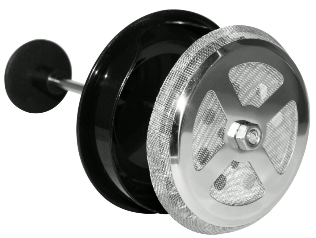 На конце поршня имеется фильтр, который отделяет заварку от жидкости. Благодаря этому получается чистый напиток. Поскольку заварка кофе в френч-прессе связана с гущей, прибор нужно часто мыть.