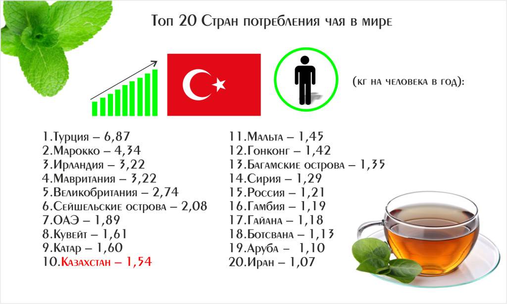 Казахстан входит в топ-10 стран по потреблению чая в мире