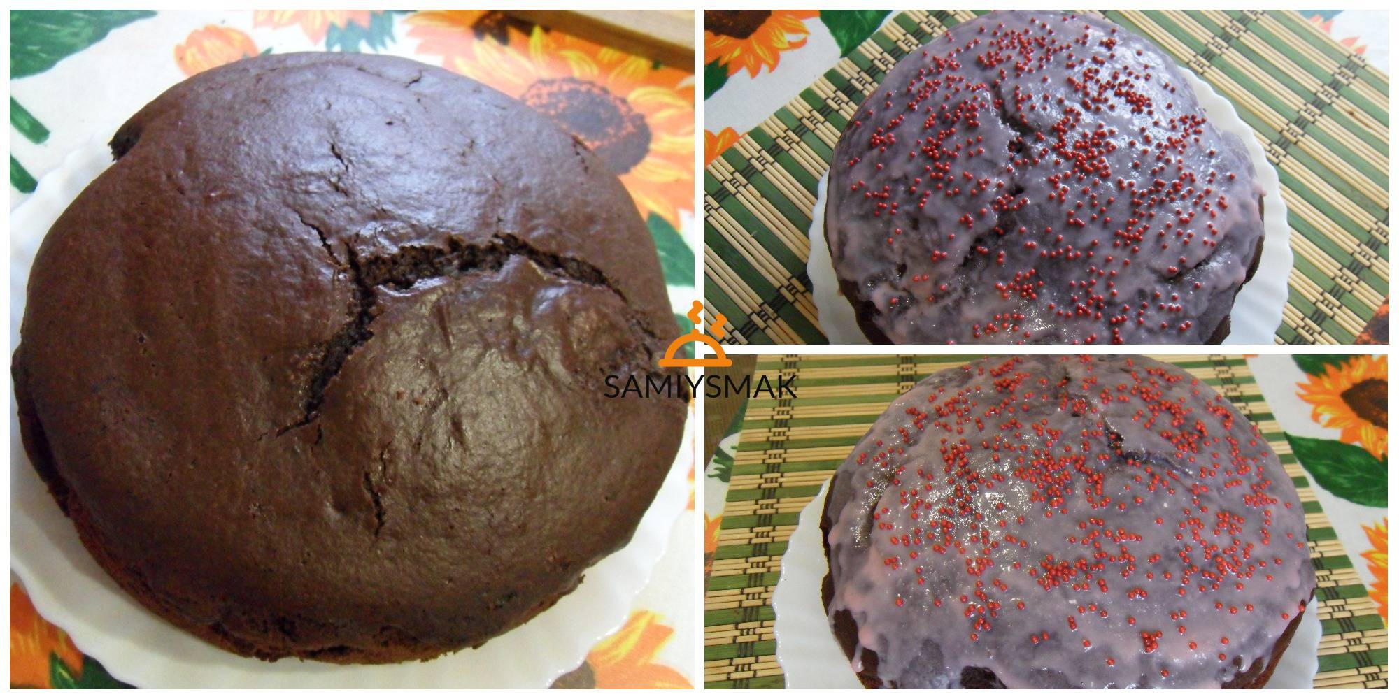 Пеките кекс в духовке при 180˚С 30-40 минут. А пока приготовьте шоколадную поливку. Полстакана молока прокипятите. Чуть остудите. Добавьте остатки масла, сахар, ванилина и 2 ложки какао. Взбейте для получения нежной глазури.