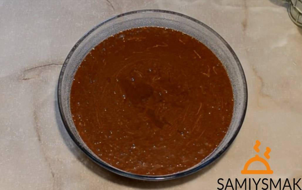 Соедините коричневую смесь с мучной. Перемешайте, чтобы образовалось однородное тесто.