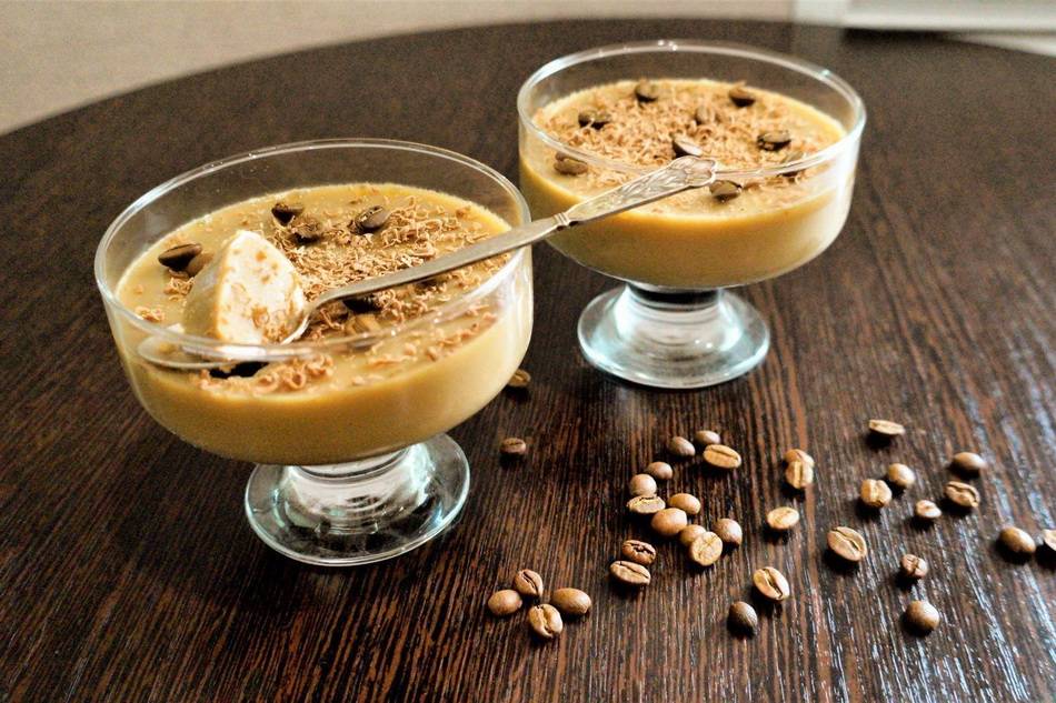 - Молоко подогрейте. Влейте в горячий кофе и добавьте остальные ингредиенты. Перемешайте – и по креманкам или чашкам. Можно использовать любую посуду. Красивее – прозрачную. Пусть крем остынет при комнатной температуре, после чего поставьте его в холодильник на несколько часов.