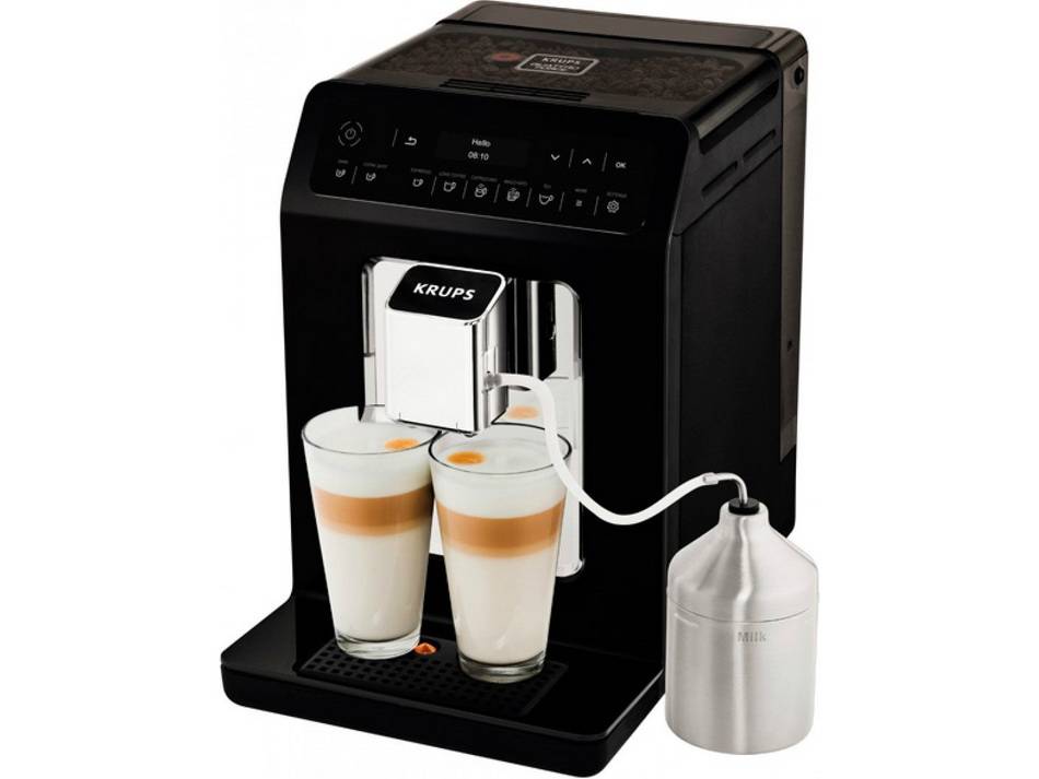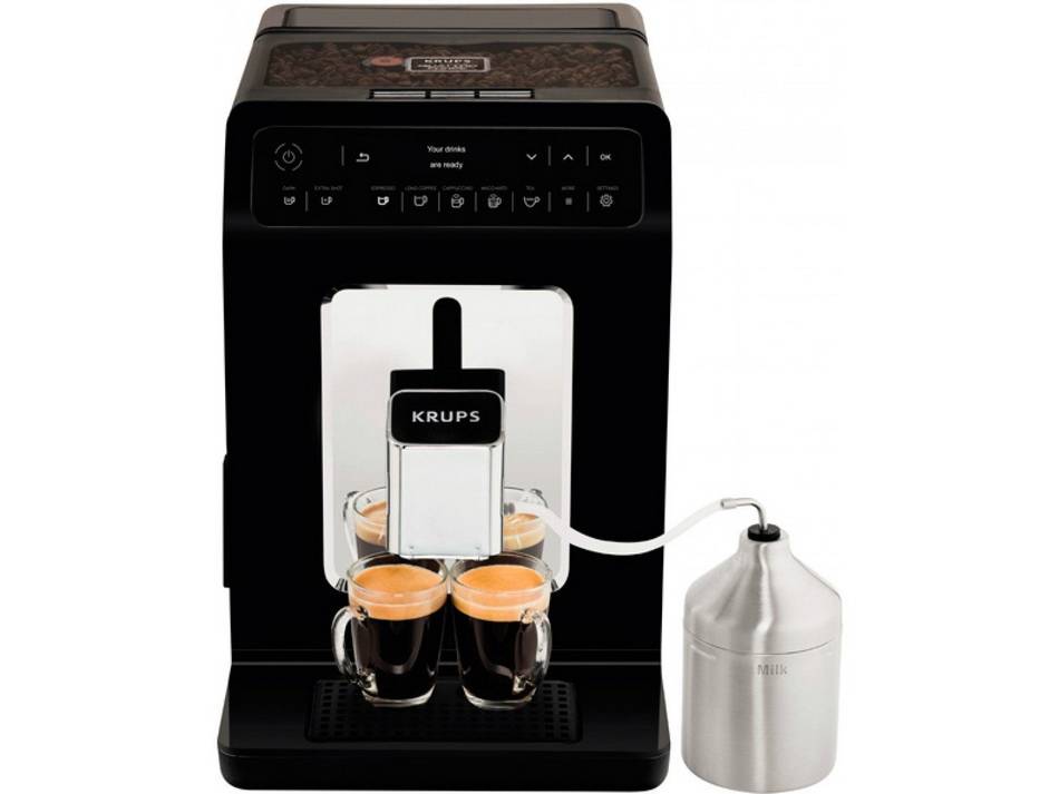 Кофемашина Krups EA891810 (видео) дает возможность регулировки крепости и температуры кофе. Комплектуется молочником