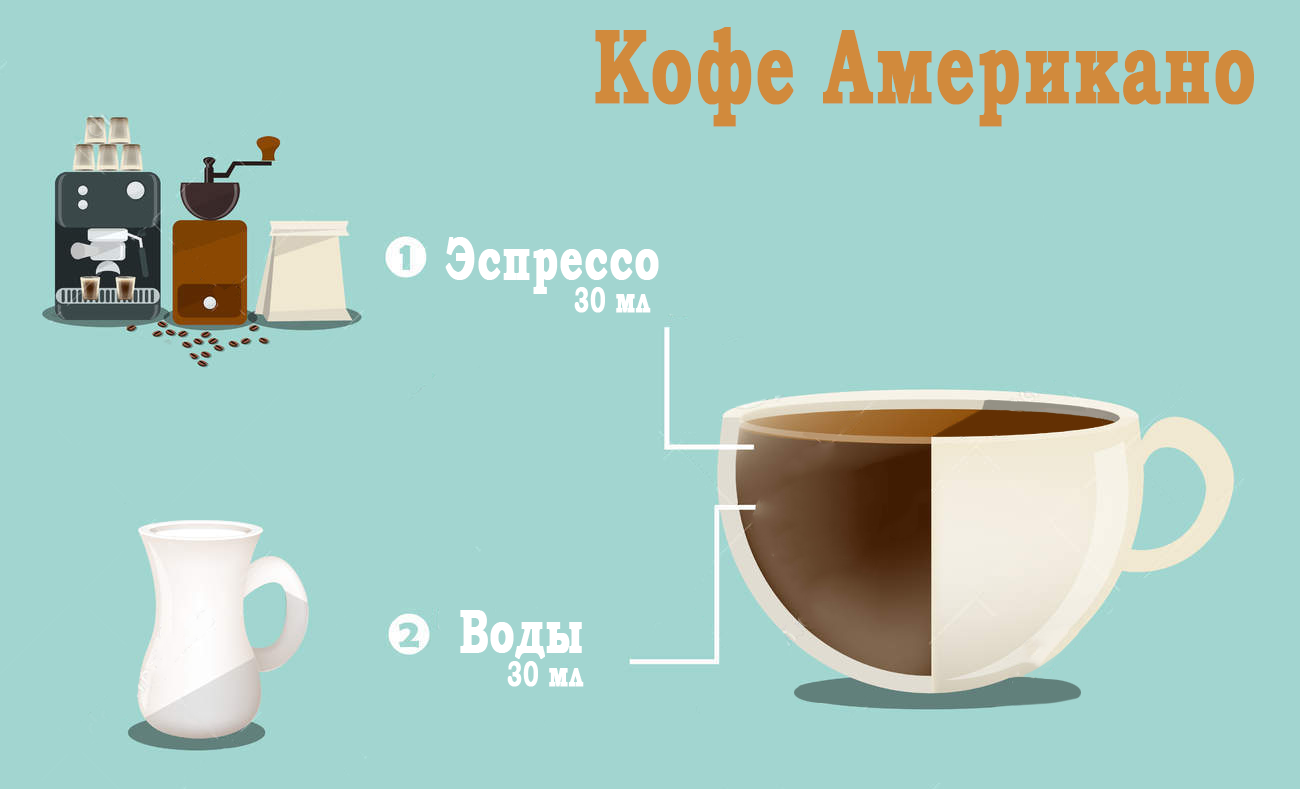 Европеизированная разновидность кофе включает 80 мл горячей воды.