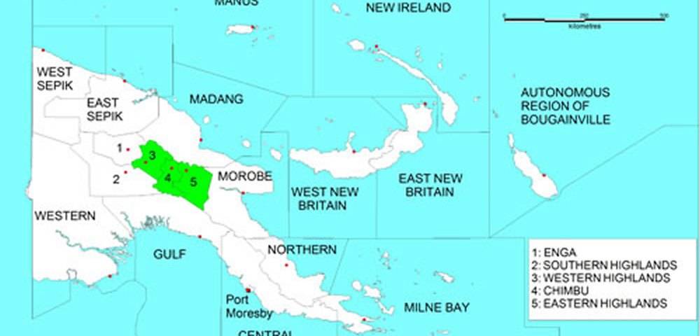 Плантации кофе в Папуа – Новой Гвинее занимают около 87 000 гектаров, большая часть из них приходится на высокогорные территории. Всего в отрасли задействовано порядка 280 000 малых хозяйств и 660 относительно крупных производителей, 65 больших плантаций, 18 зарегистрированных экспортеров. Кофе выращивается в 16 зонах, но 90% производства приходится на 5 высокогорных регионов: Western Highlands (45%), Eastern Highlands (37%), Simbu (6%), Morobe (5%), Jiwaka (5%).