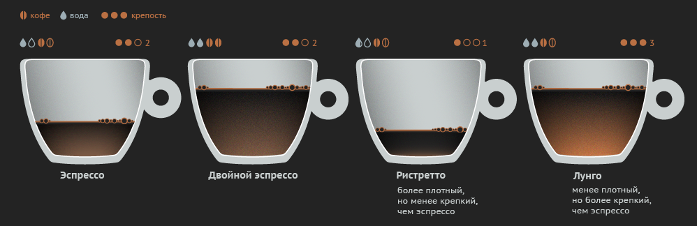 Объем эспрессо, который вы получите будет 30 мл. В одной такой порции будет содержаться 65 мг кофеина.