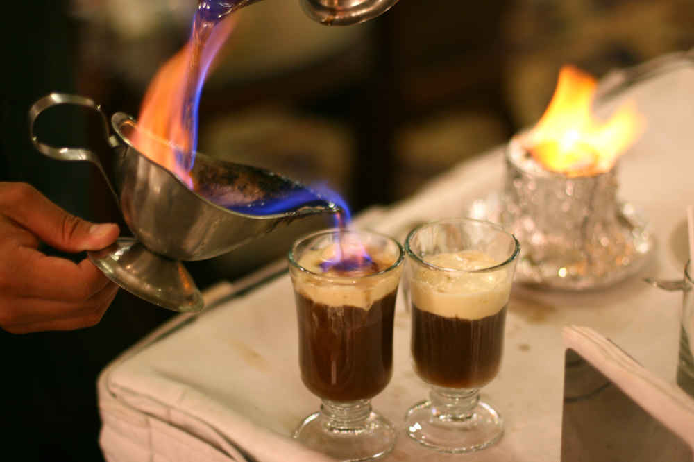 Изначально кофе по-ирландски подавали в пивных кружках, но впоследствии для коктейля изобрели специальный айриш бокал. У него толстые стенки, благодаря чему напиток медленно остывает, и ручка, не позволяющая обжечься горячим кофе.