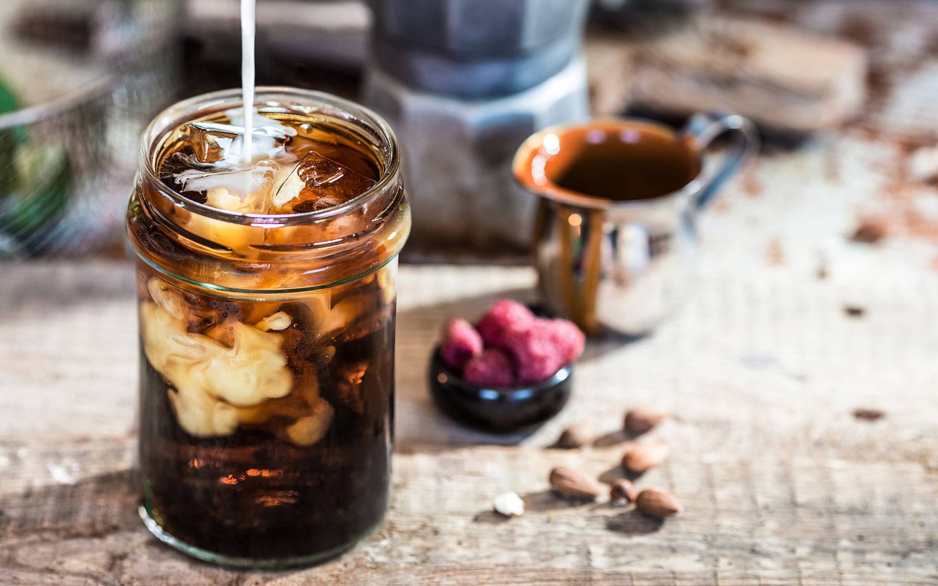 Этот напиток – отличная основа для кофейных коктейлей. Его можно смешивать с молоком, сгущенкой, медом, сливками, мороженным и сиропом. Колд брю отменно сочетается с лимонным, вишневым и апельсиновым соком.