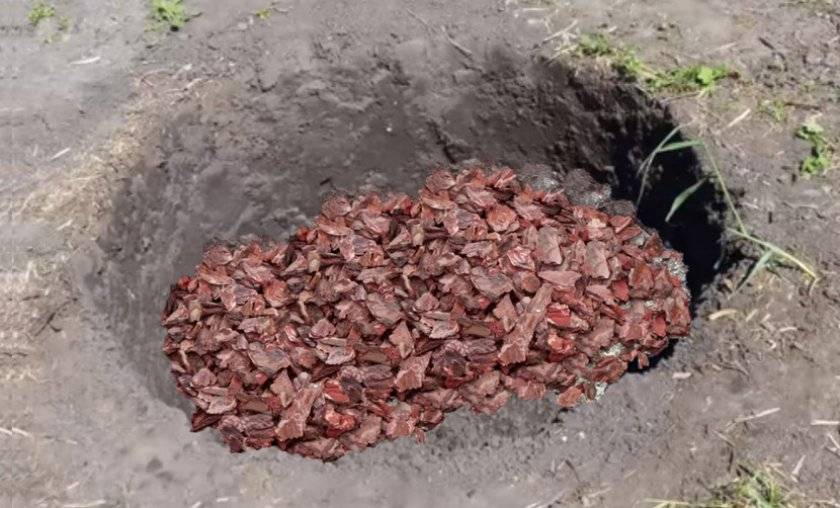 На дно ямы обязательно надо заложить дренажный слой (гравий, битый кирпич или керамзит) толщиной не менее 15–20 см, что также нужно учитывать при определении глубины лунки. Как правило, для саженца возраста 3-4 лет этот параметр колеблется в пределах от 50 до 70 см.