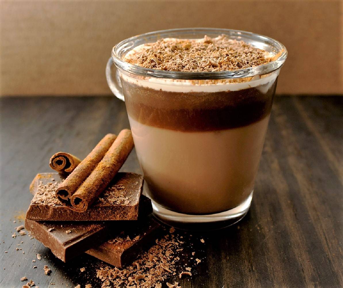 - На дно чашечки либо бокала расположите растопленный шоколад. Сверху шоколада аккуратненько влейте молоко. Последующим слоем наливаем кофе. В окончание этой композиции украсьте напиток взбитыми сливками, корицей и шоколадной стружкой.