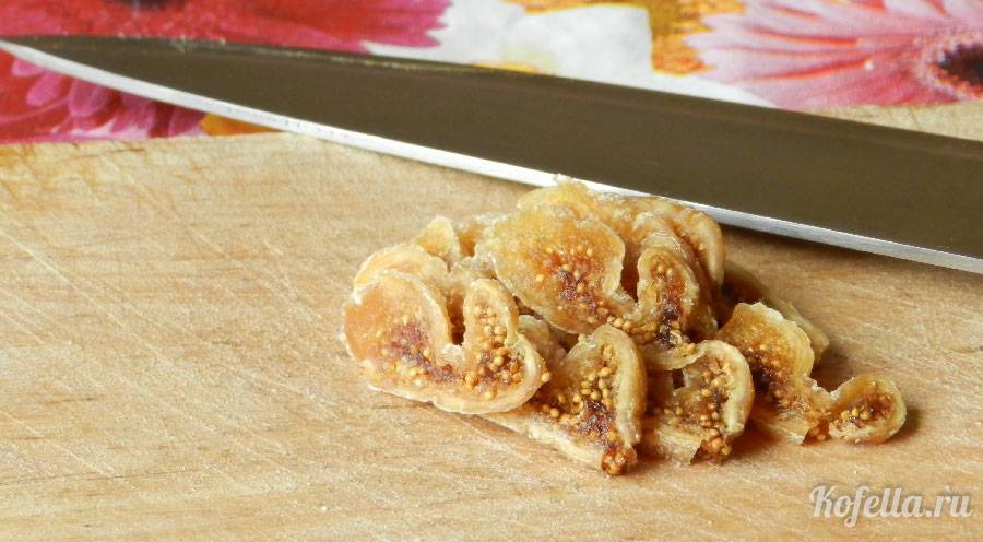 - Инжир порезать на небольшие кусочки и обжарить в течение 10-15 минут на слабом огне.