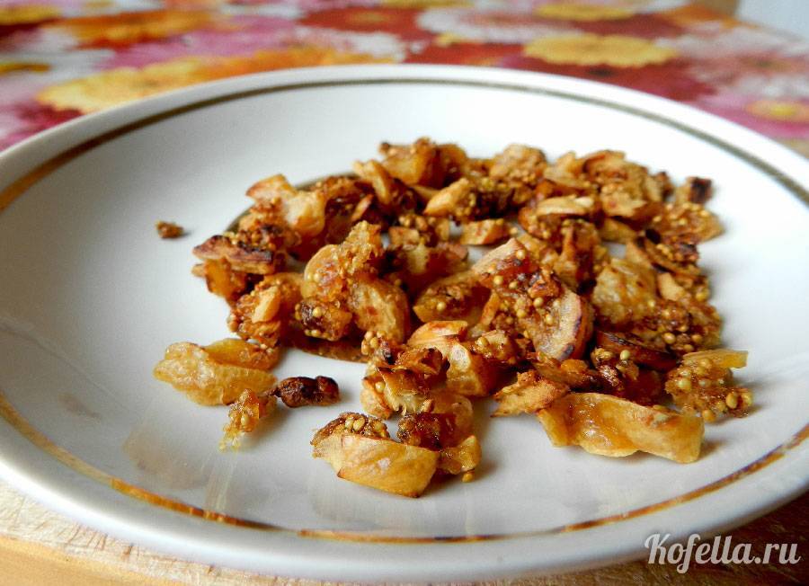 - Обжаренный инжир остудить, затем смешать его с зернами и перемолоть.