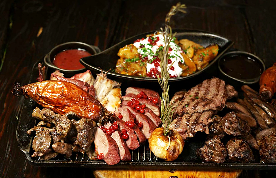 - сочетание в одном блюде нескольких видов мяса, например, свинины, баранины и говядины в рагу по-карельски – карьялан пайсти;