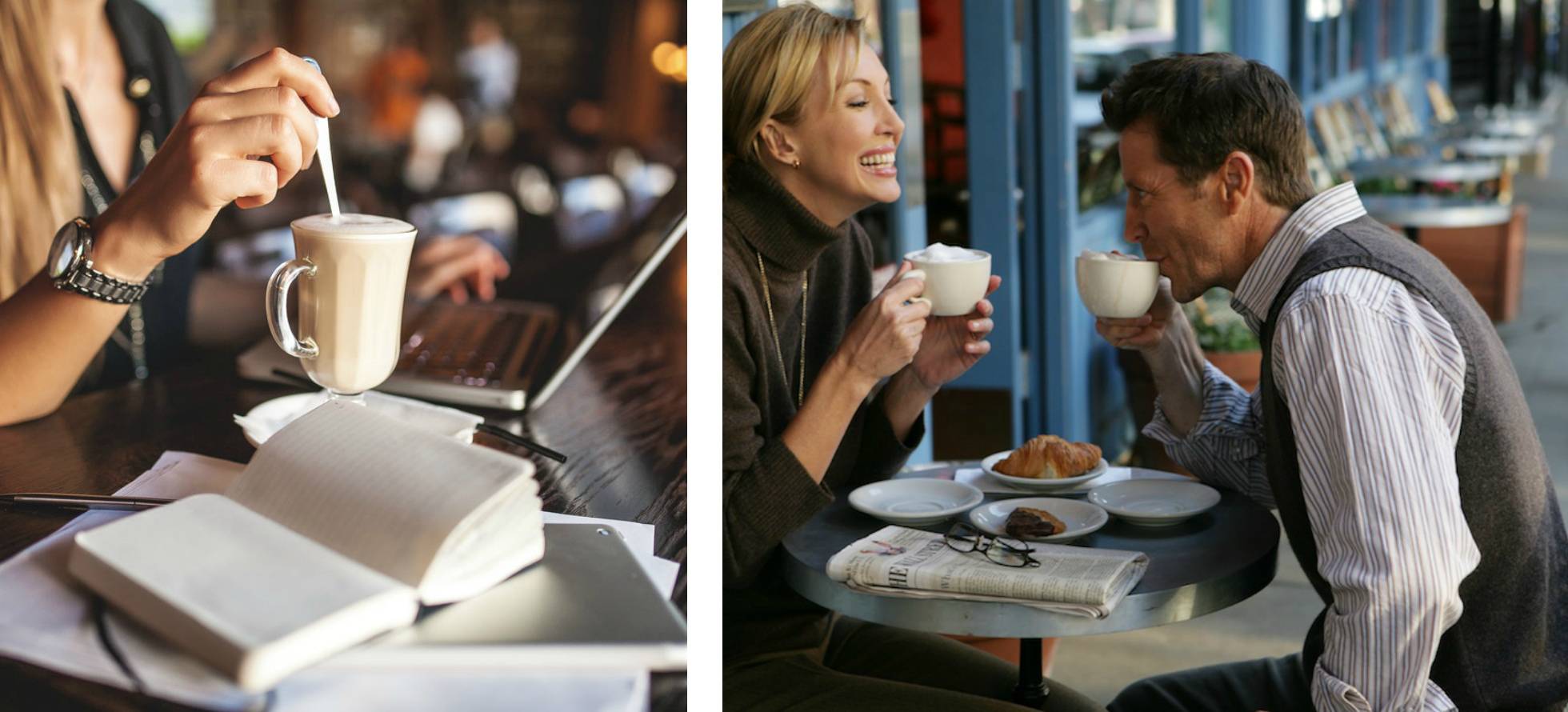 Кофе, как способ общения — это не кружечка пива и не бокал вина. Здесь другие ритмы. И если чайная церемония предполагает неторопливость и продолжительность, то кофе обладает эффектом ускорения, деловая встреча за чашечкой этого напитка вполне может уместиться в 20 минут. Но по закону парадокса, кофе может не только ускорять, но и бесконечно растягивать время. Ведь свидание с любимым человеком, будь-то близкая подруга или «мужчина всей жизни» может продолжаться часами, сопровождаемое «еще одной» чашечкой кофе.