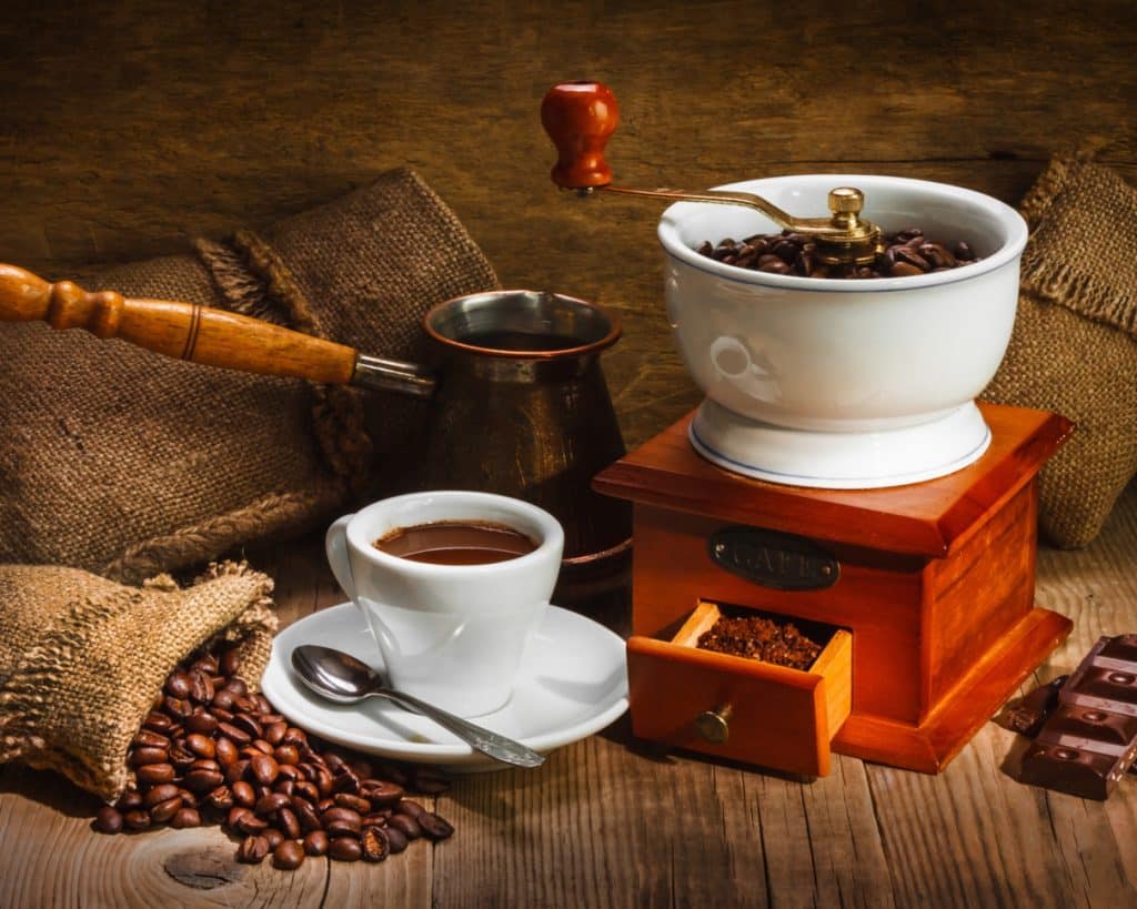 - Помол зерен должен быть самым мелким, для чего используется специальная кофемолка или ручная ступка с широким пестиком.