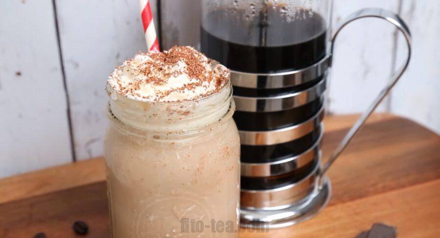 - далее смесь помещается в блендер с добавление пары кубиков льда (можно сделать из того же эспрессо) и 2-3 столовых ложек мороженого (по вкусу);